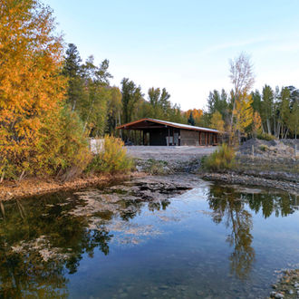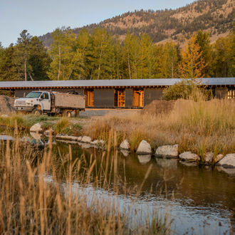 The home is sited on the seam between forest and pasture, occupying the tree line like the local wildlife, hesitant to expose themselves to danger in the open meadow. The home is dwarfed by the trees to the west, effectively blending it into the backdrop of the woods and creating moments of intimacy or long views for different program along the length of the structure. The home exposes its broadside to the east, opening to views of the Gros Ventre range across the meadow and welcoming morning light.