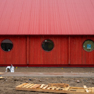 The circular windows are a direct nod to the fanciful round aperture motif of classics from 20,000 Leagues Under the Sea and The Hobbit to Star Wars and the real life portholes of boats, spaceships, and the International Space Station. Much as authors use the circle to subvert their audience’s expectations and signify something out of the ordinary, we are using the round windows to reset the boys’ expectation for what their experience at a residential treatment facility can be. Wood-clad interiors and a pitched roof reference the archetypal cabin form, aligning the design with the wilderness aspect of the program that sets Red Top Meadows apart from other residential treatment facilities.